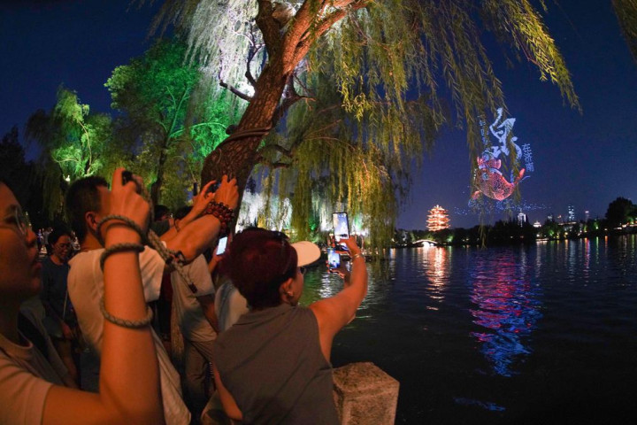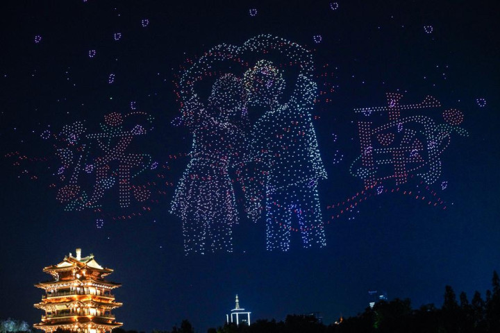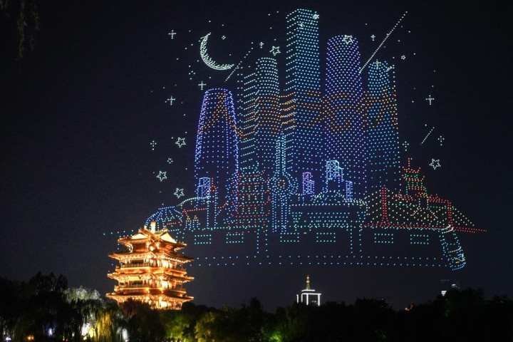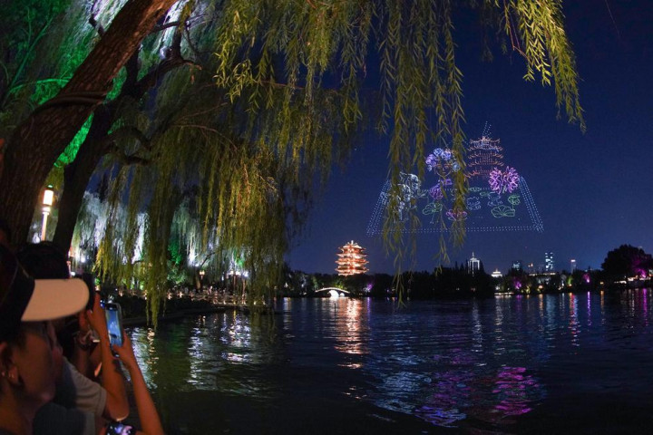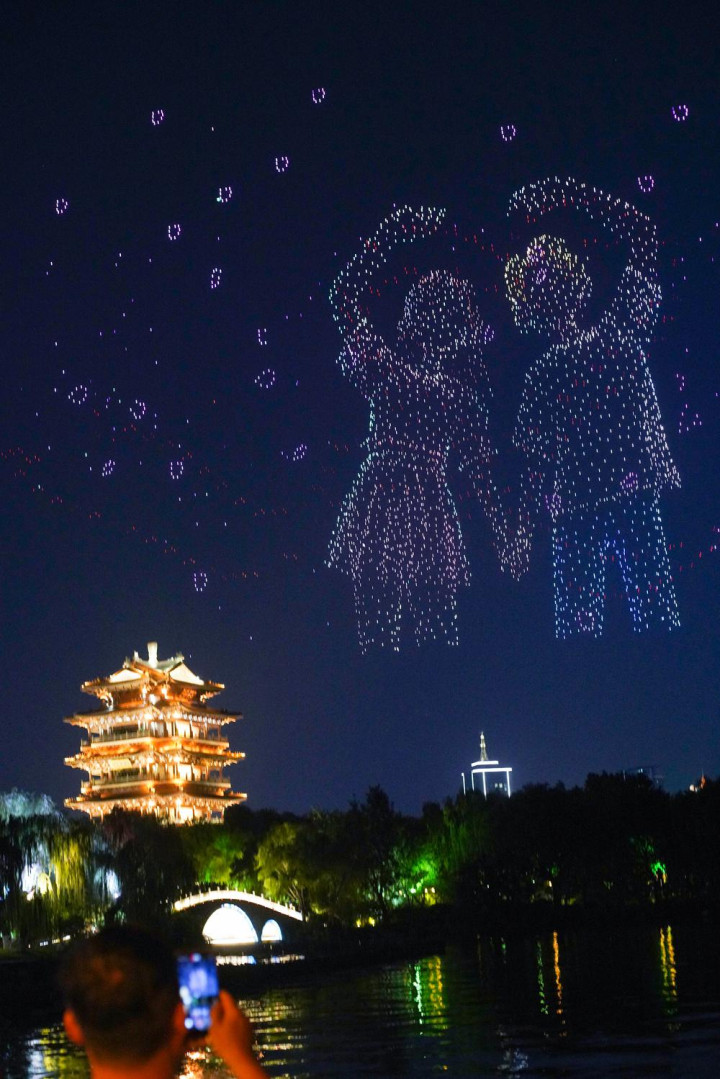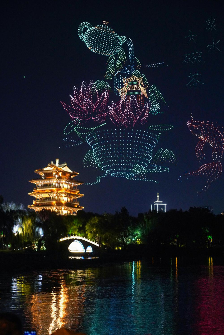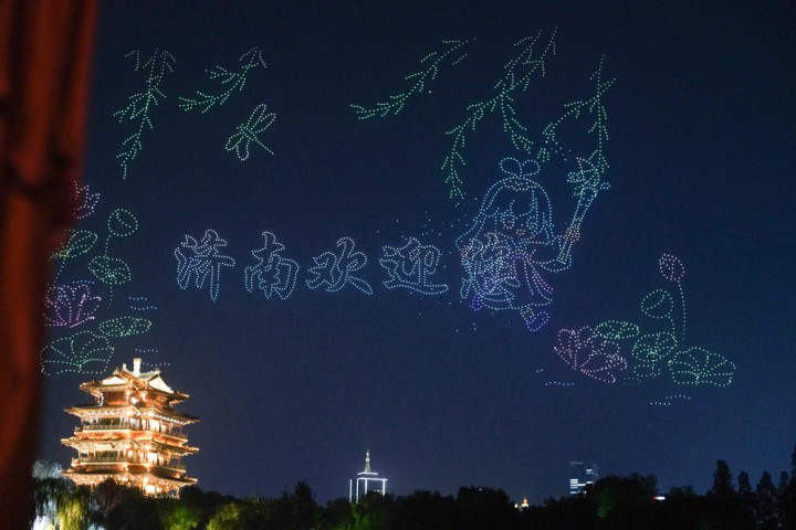 2025年7月25日,2025济南国际泉水节——“泉染星穹”无人飞机秀,5000架无人机以深邃天幕为画布,以明湖胜景为舞台,为市民游客绘制了一幅璀璨画卷,点亮了泉城夜空。